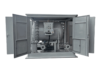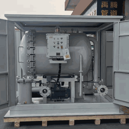 油液在系統中首先進入粗濾系統,經處理,大顆粒的雜質被去除,以保護油泵不被損壞,后油液被泵入二級過濾系統,經處理進入聚結室內的聚結濾芯,由于聚結濾芯材料獨特的極性分子結構的作用,油液中的游離水以及乳化水在通過濾芯后聚結成為較大的水滴,在重力作用下下沉至儲水罐內。微細水分子在慣性作用下隨同油液至分離濾芯處。分離濾芯由特殊的疏水材料制成,當油液通過時,微細水分子被擋在濾芯的外面,經過相互聚集,因重力沉降到聚結室下部的儲水罐中排出。油液經過脫水處理后,進入精濾系統以保證進入用戶油箱的油液清潔度達到設計標準。