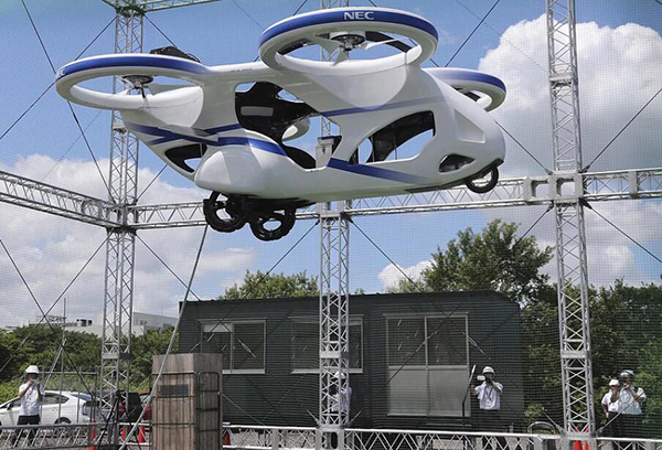 日本電氣巨頭NEC8月5日在東京郊外的一處試驗(yàn)場(chǎng)地成功試飛無人駕駛垂直起降飛行汽車原型車,由電池提供動(dòng)力的原型車在4個(gè)螺旋槳的帶動(dòng)下垂直起降,在3米多高的空中懸浮了大約1分鐘。